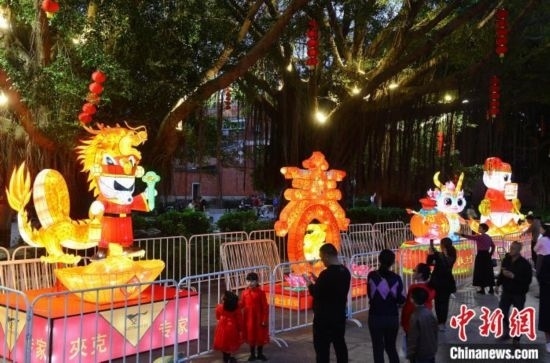 圖為2月20日晚,民眾在泉州古城內(nèi)觀賞花燈。中新網(wǎng)記者 張斌 攝