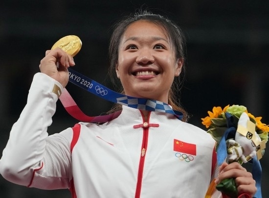 2021年8月7日,冠軍劉詩穎在東京奧運(yùn)會田徑項目女子標(biāo)槍頒獎儀式上。新華社記者 呂小煒 攝