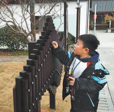 杭州市中泰竹笛展示館內,小朋友在體驗竹笛文化。本報記者 王 玨攝