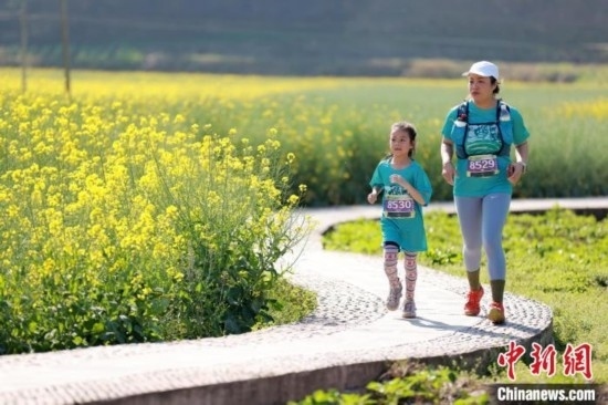 家庭參賽選手穿越油菜花田。賽事組委會(huì)供圖