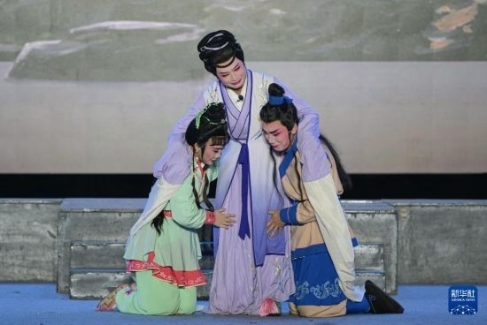 10月6日,演員在海口市萬綠園表演瓊劇。