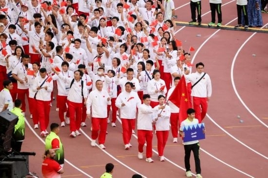 開幕式上,中國代表團(tuán)第13個(gè)入場,旗手由乒乓球隊(duì)男子運(yùn)動(dòng)員李天陽和跆拳道隊(duì)女子運(yùn)動(dòng)員酈雨琪擔(dān)任。本屆運(yùn)動(dòng)會(huì)中國代表團(tuán)共派出全國22個(gè)省區(qū)市的103名運(yùn)動(dòng)員參賽,其中女子運(yùn)動(dòng)員55人,男子運(yùn)動(dòng)員48人,將參加田徑、游泳、三對三籃球、沙灘排球、網(wǎng)球、跆拳道、國際象棋等17個(gè)大項(xiàng)、124個(gè)小項(xiàng)的比賽。
