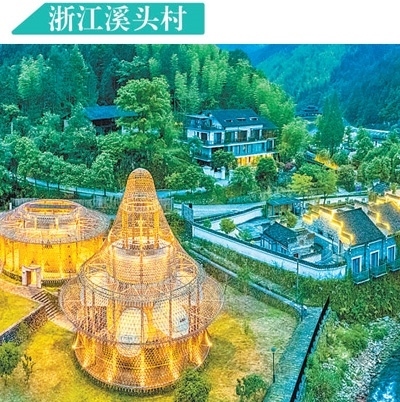 浙江麗水市龍泉市溪頭村,不僅是龍泉青窯燒制技藝傳承地,還是竹建筑文創(chuàng)生活村落。圖為溪頭村竹建筑夜景。竇 皓 張有鋼攝影報(bào)道