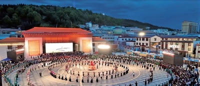 若爾蓋縣北上廣場上熱鬧的鍋莊。