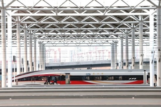 除夕當(dāng)天,一列復(fù)興號(hào)智能動(dòng)車組蓄勢(shì)待發(fā)。