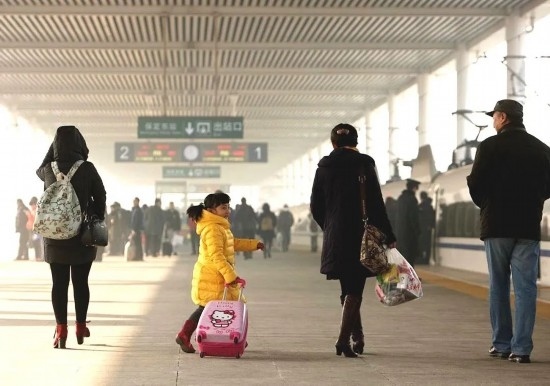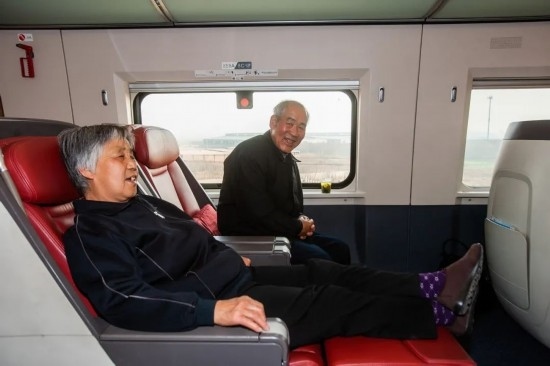 2015年,一對(duì)老兩口乘坐高鐵到北京與兒子過(guò)團(tuán)圓年,實(shí)現(xiàn)反向春運(yùn)。