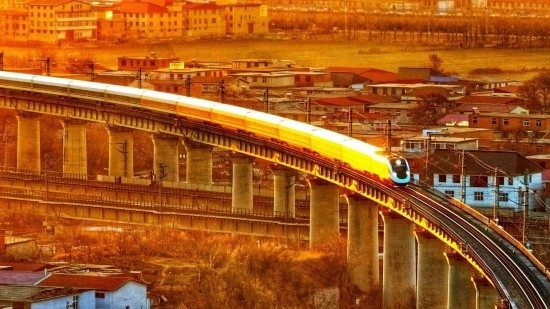 1月28日除夕,一列復(fù)興號(hào)動(dòng)車組迎著朝陽(yáng)行駛在京廣高鐵上。