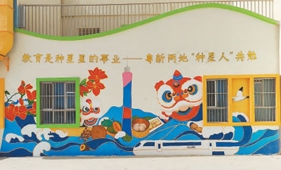 清晨,太陽剛剛升起,新疆伽師縣西克爾庫勒鎮(zhèn)中心幼兒園內(nèi),一群背著畫板、提著顏料箱的年輕人已開始忙碌。剛翻新的幼兒園墻面成為他們的畫布,大海與雪山、醒獅與烤馕、廣州塔與喀什高臺(tái)民居等粵新兩地文化元素在此相遇。百人共繪的畫卷(局部見圖),不僅點(diǎn)亮邊疆孩子們的藝術(shù)星空,也滋潤著共創(chuàng)者的心靈。