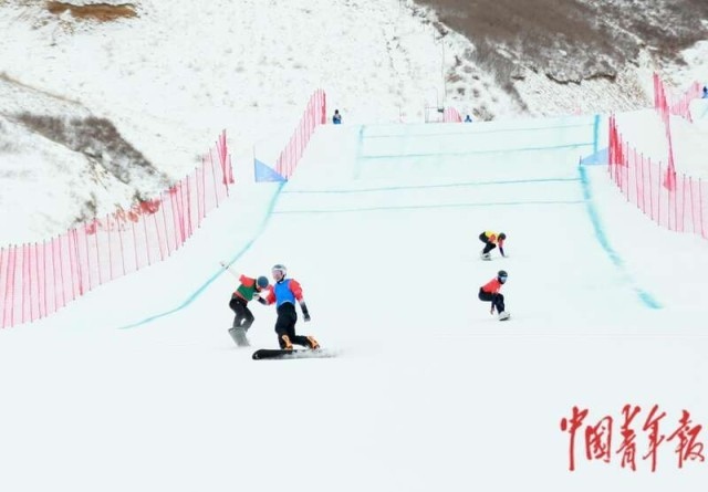 2月20日,單板滑雪公開組障礙追逐混合團體賽中,貴州隊王會楊率先沖過終點。中青報·中青網記者 石佳/攝