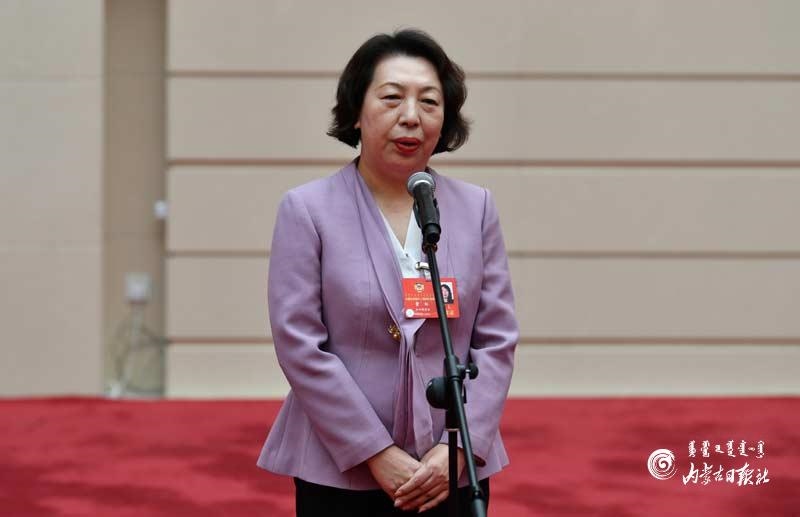 自治區(qū)政協(xié)委員曹紅回答記者提問。內(nèi)蒙古日報記者 馬建荃攝