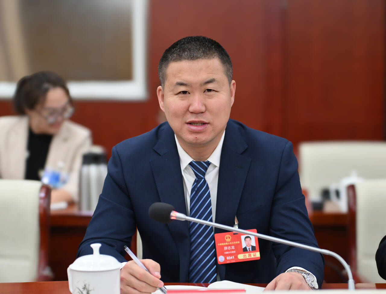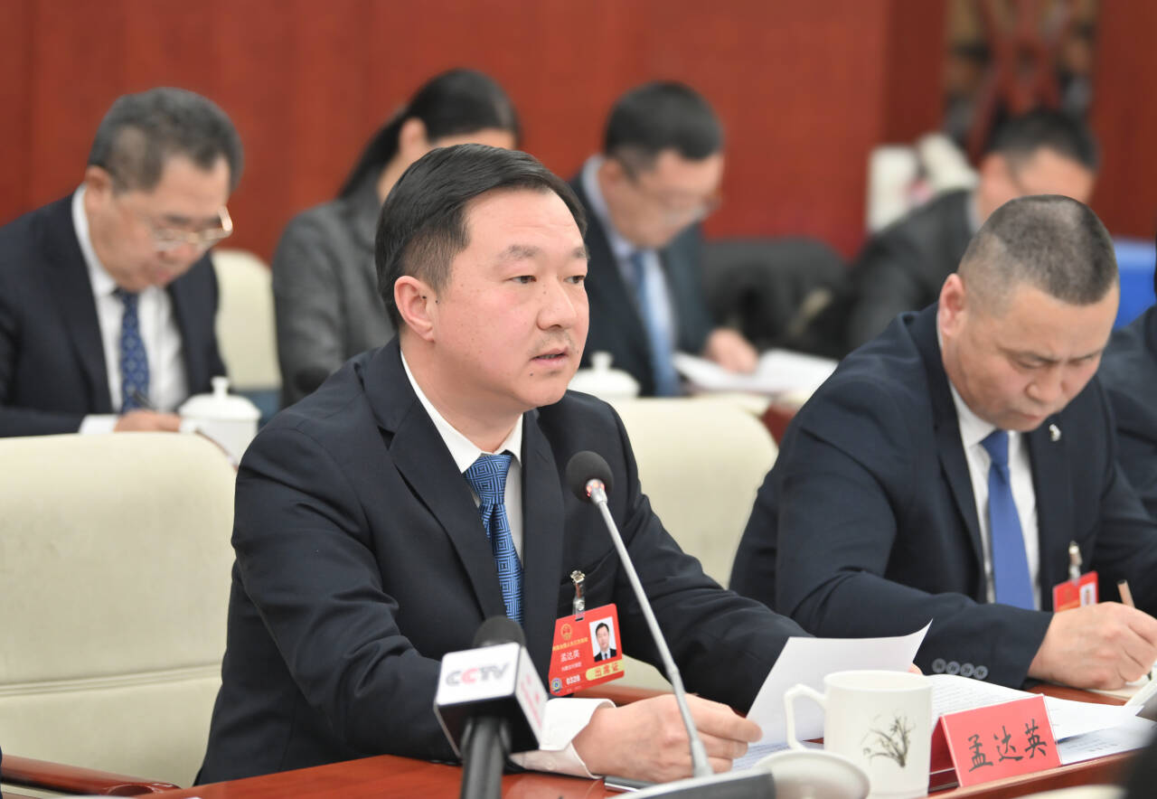 3月9日,全國人大代表孟達英(左)在審議“兩高”工作報告時建議,最高人民法院應出臺有關破壞濕地行為定罪量刑標準的有關法律配套司法解釋。草原云記者 馬建兵 攝