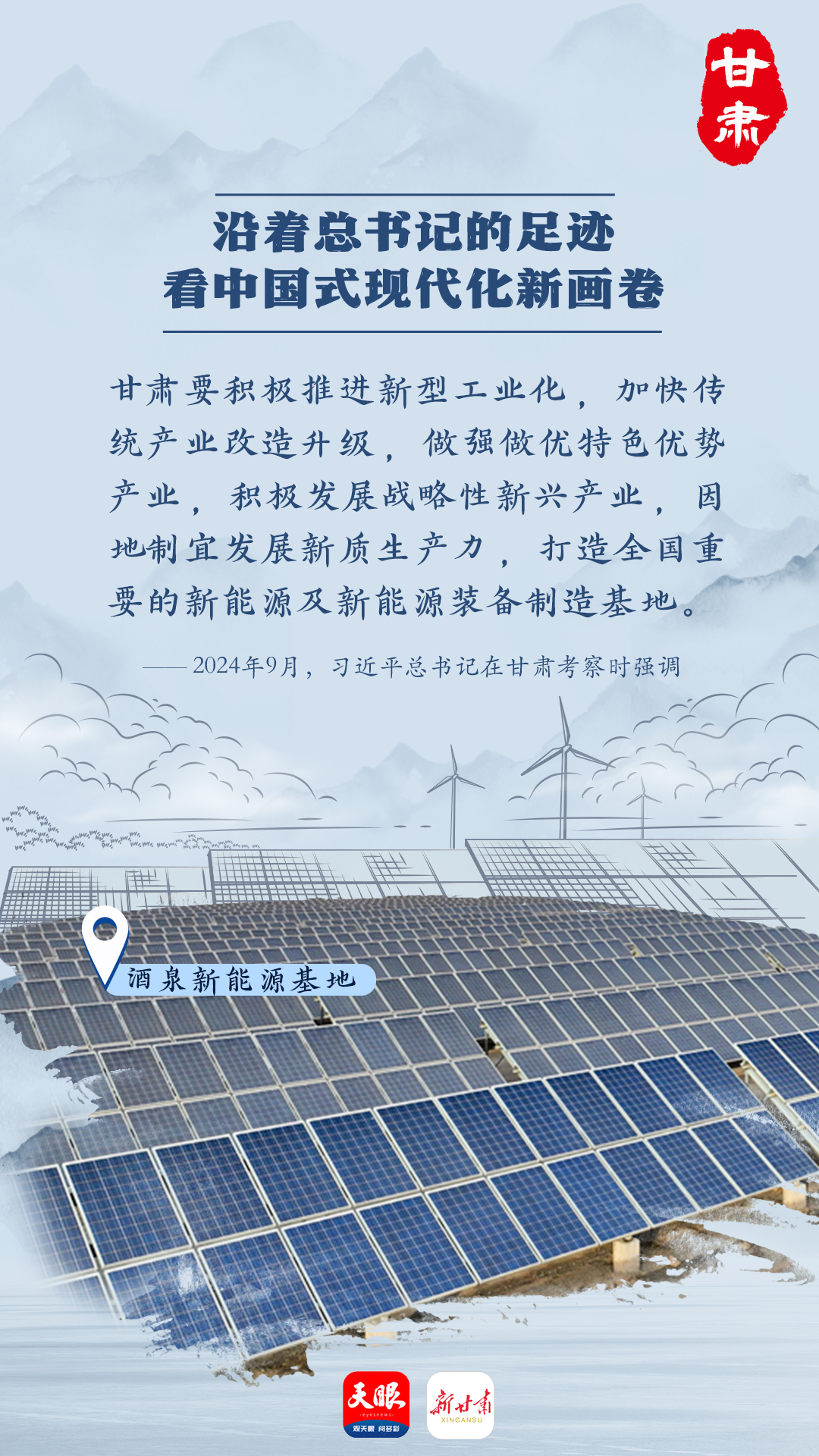 甘肅獲批建設(shè)國家新能源綜合開發(fā)利用示范區(qū),新增新能源裝機(jī)1258萬千瓦、總量達(dá)到6437萬千瓦,裝機(jī)和發(fā)電量占比均居全國第2位;新能源及新能源裝備制造業(yè)產(chǎn)值達(dá)到830億元;全省電源總裝機(jī)歷史性突破1億千瓦……如今,甘肅作為全國重要的新能源和新能源裝備制造基地正在崛起,“風(fēng)光”大省正向“風(fēng)光”強(qiáng)省加速跨越。