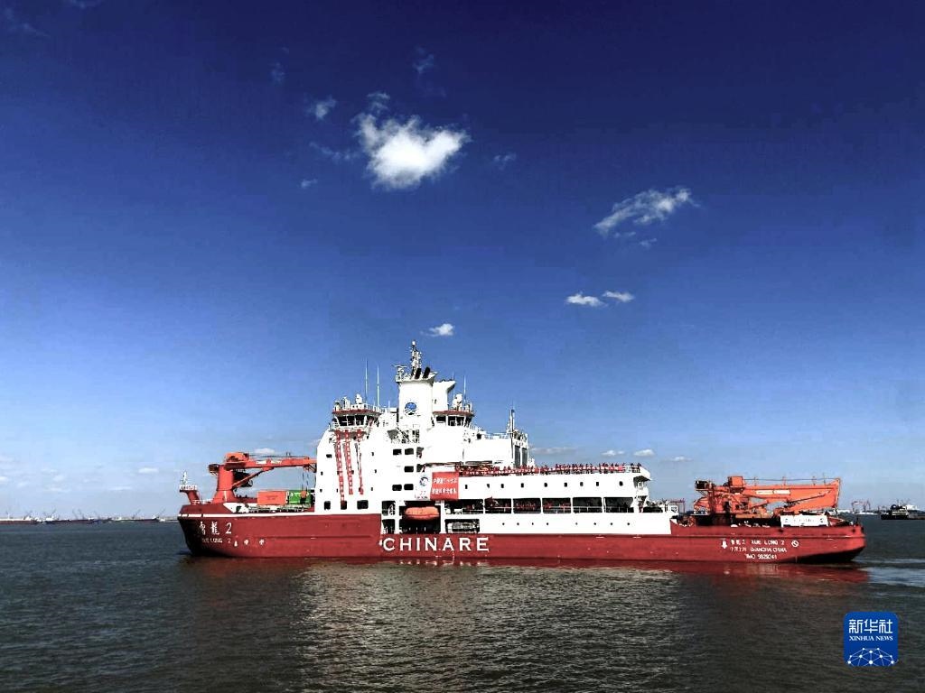 2020年11月10日,中國(guó)第37次南極科學(xué)考察隊(duì)乘坐“雪龍2”號(hào)極地科考破冰船從上海起航,奔赴南極執(zhí)行科學(xué)考察任務(wù),這是“雪龍2”號(hào)極地科考破冰船駛離碼頭。新華社發(fā)(中國(guó)極地研究中心供圖)