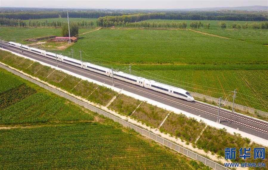 一列“和諧號”動車組列車行駛在內蒙古赤峰市元寶山區(qū)的田野間(6月30日攝,無人機照片)。 當日,隨著G8382次“和諧號”動車組列車從內蒙古赤峰站緩緩駛出,喀左至赤峰高鐵全線開通運營。該線經喀左站與京沈高鐵接軌,內蒙古赤峰地區(qū)由此接入全國高鐵網。 新華社記者 彭源 攝 -