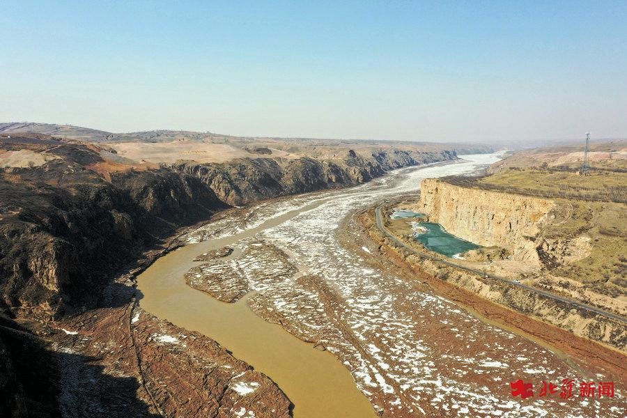 黃河呼和浩特段即將開(kāi)河 俯瞰冰面碧綠如玉相當(dāng)壯觀